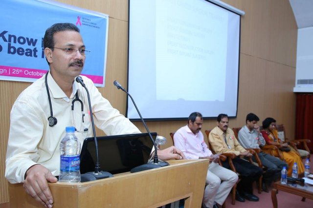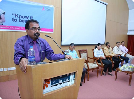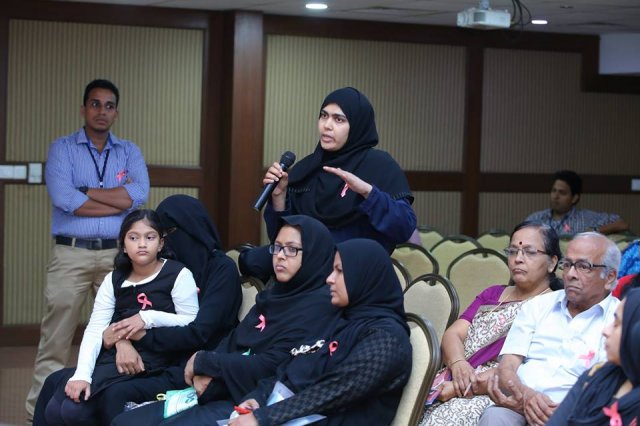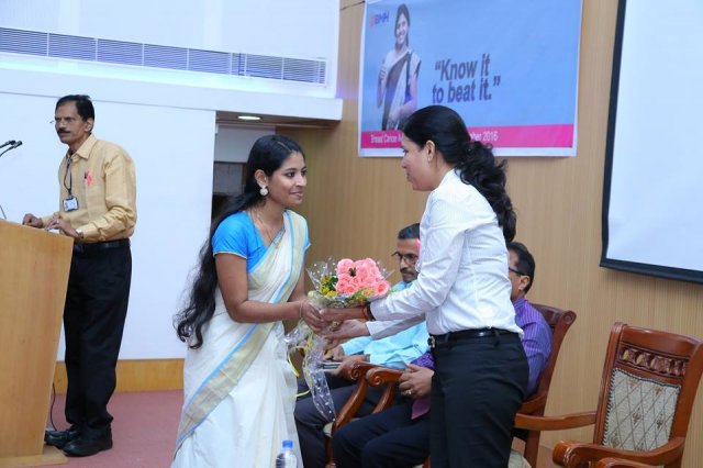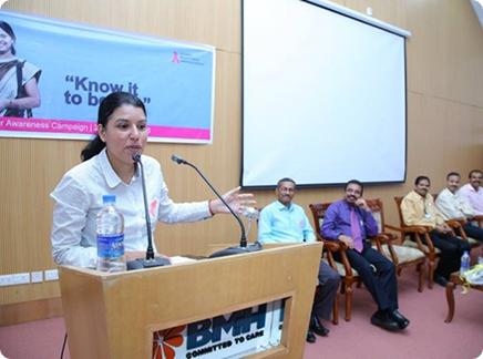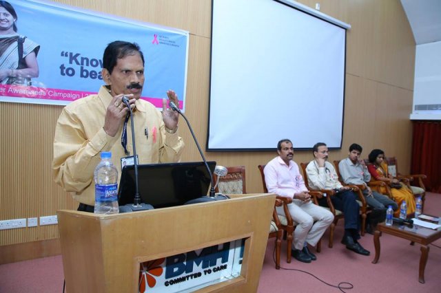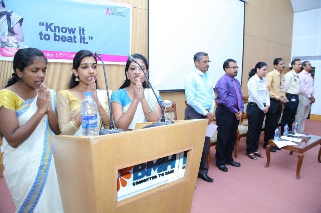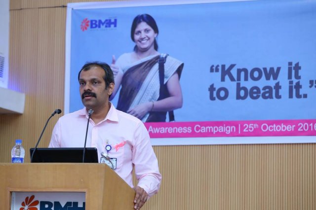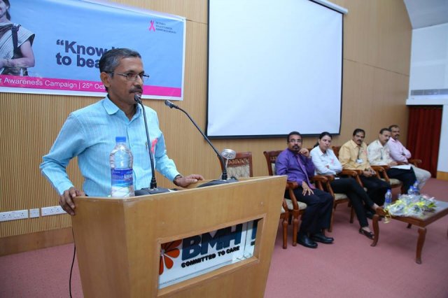 BMH inaugurated breast cancer awareness drive “Breast Cancer – Know it to beat it” on 25th October 2016. Mrs. Uma Behra – City Police Commissioner, Kozhikode was the chief guest for the event. Delivering the presidential address Dr. KG Alexander Chairman and Managing Director of Baby Memorial Hospital emphasized on the importance of early detection. The oncology team at BMH comprising of Dr. Sasindran PR, Head – Department of Radiation Oncology, Dr. Sajeevan, Sr. Consultant – Medical Oncology, Dr. Shaji Ayillath, Consultant – Surgical Oncology, Dr. Vishnu Rajan Nambiar, Jr. Consultant – Radiation Oncology and Dr. Dhanya K.S, Jr. Consultant – Radiation Oncology spoke during the event and answered questions from public. Hussain Cheruthuruthy, Director Wellness Foundation also spoke at the event. The event was well received with more than 300 people participating in the event.
